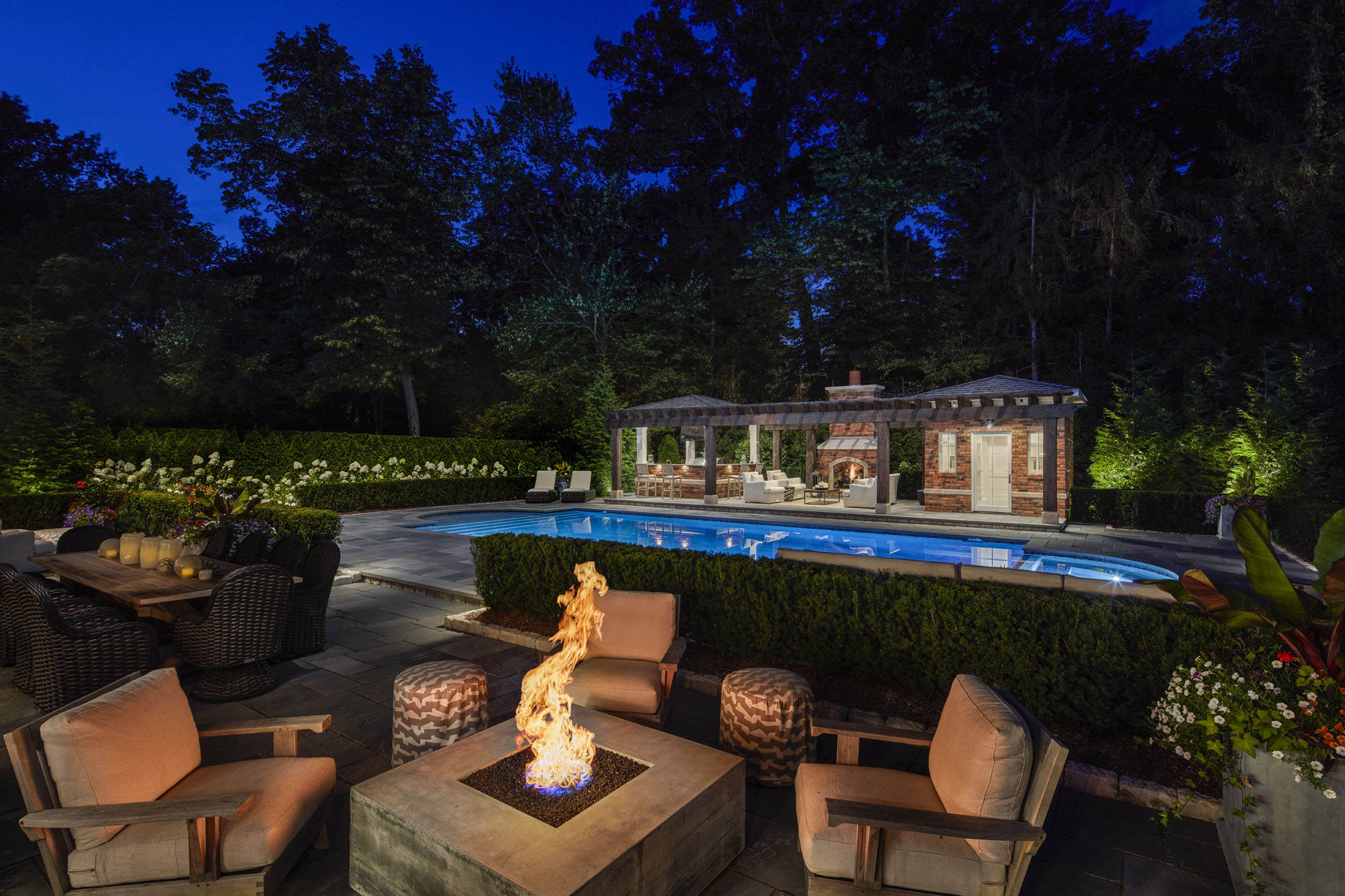 This stunning collection of outdoor spaces embodies the meticulous craftsmanship and thoughtful design philosophy of Mosher Design Co., where every detail contributes to a harmonious and masterful landscape environment. Seamlessly blending architecture with nature, each space is carefully curated—whether it’s a sleek pool framed by elegant stonework, a cozy fire feature set within lush plantings, or a tailored outdoor kitchen designed for effortless entertaining. Rolling lawns, sculptural trees, and layered gardens add depth and texture, while carefully selected materials and lighting create an inviting atmosphere. Through balance, precision, and an innate understanding of outdoor living, Mosher Design Co. transforms landscapes into breathtaking extensions of the home.